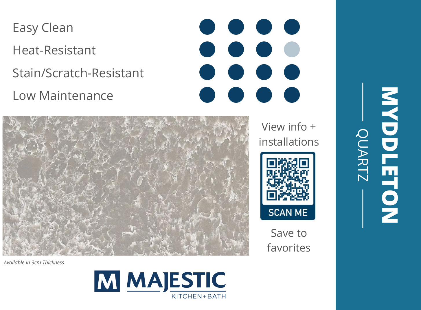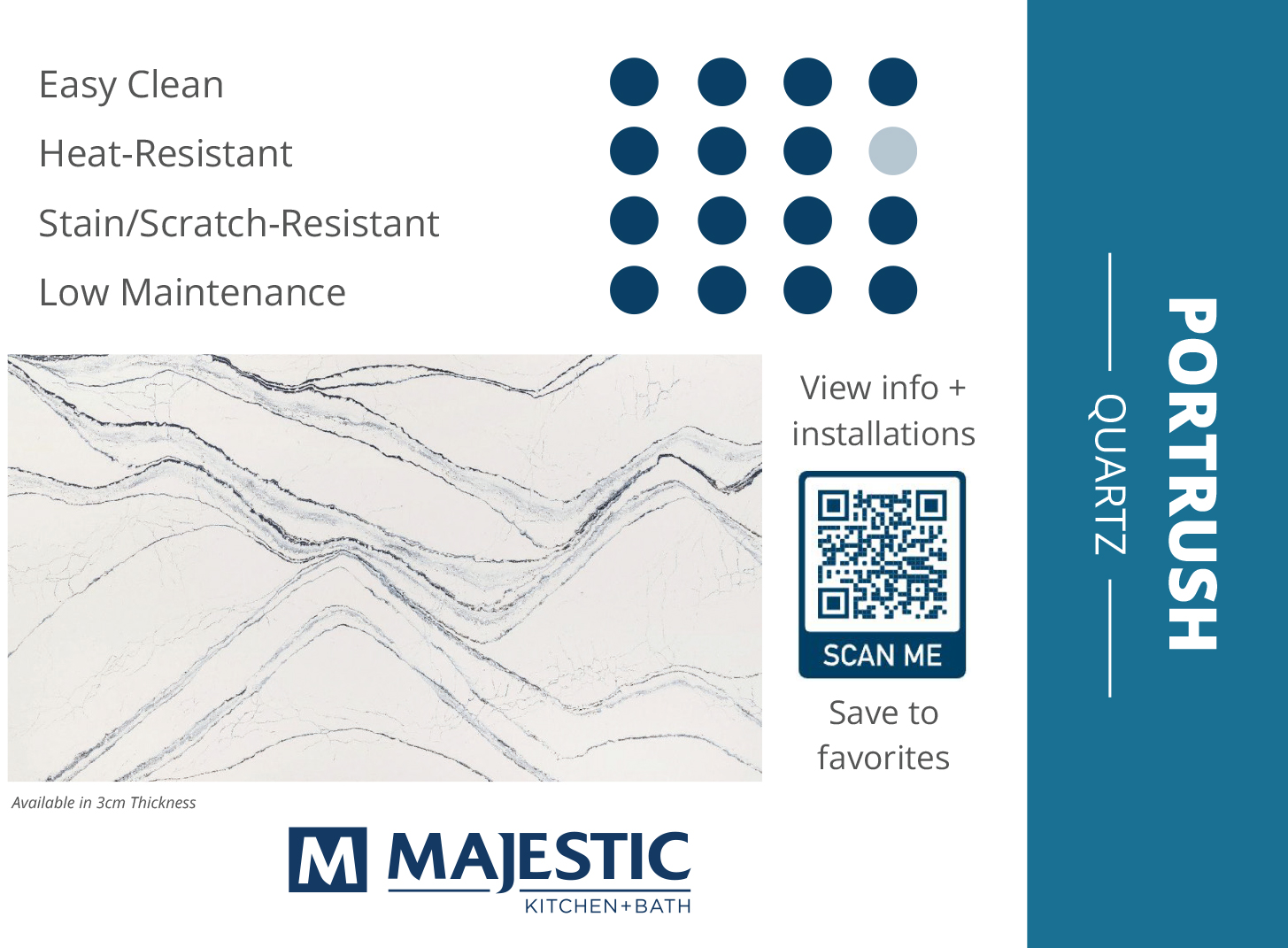 If you’re in the market for a top-quality Quartz Countertops, Cambria Quartz is an easy ‘yes’. Quartz is often referred to as “man-made” when in reality it’s a natural stone, but the amount of pure, natural quartz used in your countertop slabs depends on the manufacturer. When you opt for Cambria Quartz, you can rest assured knowing they use some of the highest concentrations of pure, natural quartz minerals to ensure strong slabs every time. They also produce some of the broadest & most innovative designs in the industry, making it easy to find the perfect eye-catching slab for your next project. Check out our selection below to find the perfect shade and detailing to complement your space. View All Quartz Options